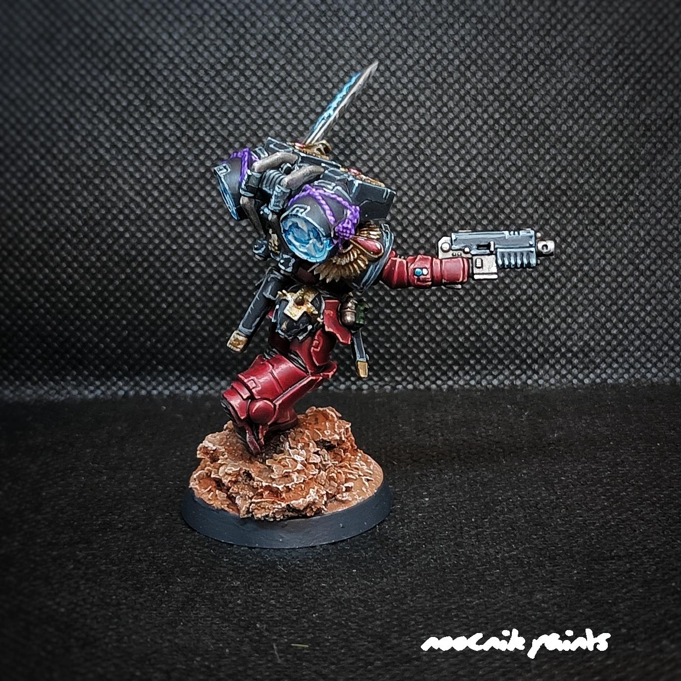 Flesh Tearers Captain with Jump Pack is one of the icons in the world of Warhammer 40,000 (WH40K), playing a key role in the structure of the Space Marines army. The Flesh Tearers are known for being one of the most brutal and aggressive Space Marine chapters. They reflect the dark and ruthless side of the WH40K universe. The captain of the Flesh Tearers unit, equipped with a Jump Pack, is an elite character who, thanks to his mobility and powerful weapons, is able to carry out lightning attacks from the air, wreaking havoc in the enemy ranks.